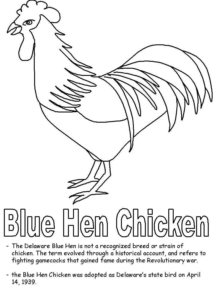 Click on the Delaware Blue Hen Chicken coloring page below to see it in its own window (close that window to return to this screen) OR Right click and save image to your hard drive to print from your own  image software at your convenience.