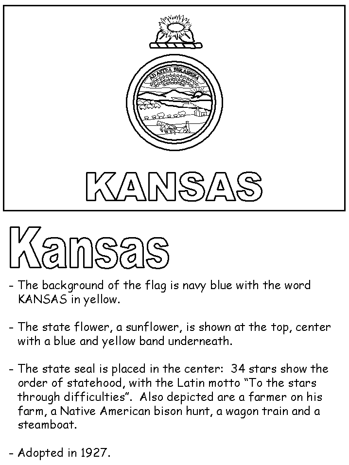 Click on the Kansas state flag activity worksheet below to see it in its own window (close that window to return to this screen) OR Right click and save image to your hard drive to print from your own  image software at your convenience.