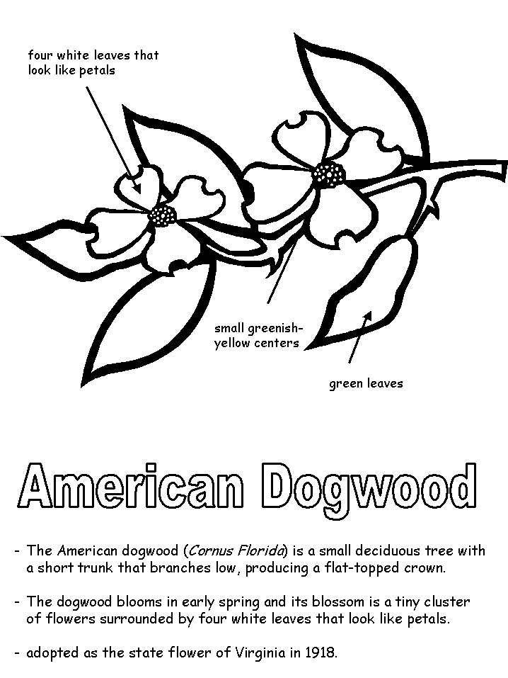 Click on the Virginia's American Dogwood activity worksheet below to see it in its own window (close that window to return to this screen) OR Right click and save image to your hard drive to print from your own  image software at your convenience.