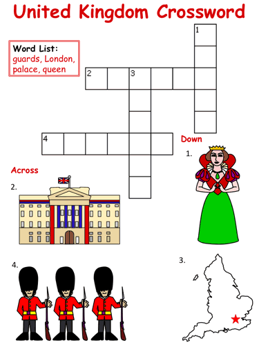 Print out the crossword puzzle with words about the United Kingdom -- you have a choice between an easy crossword for younger children and a more challenging crossword for older kids and adults.