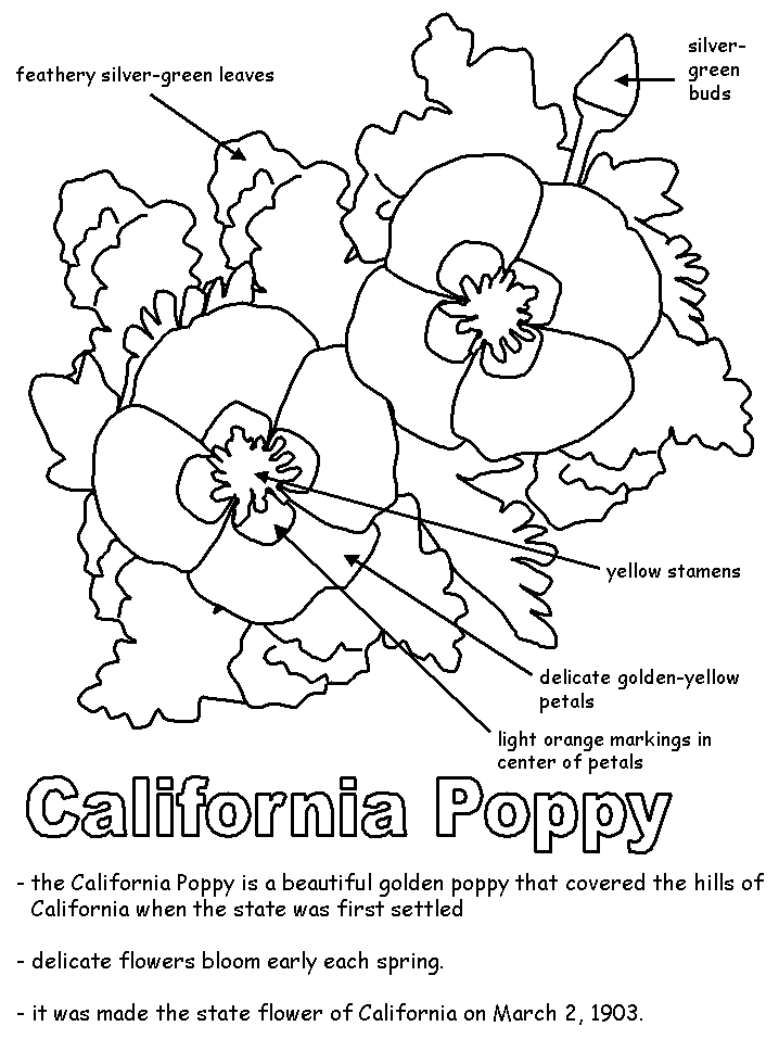 Click on the California Poppy activity worksheet below to see it in its own window (close that window to return to this screen) OR Right click and save image to your hard drive to print from your own  image software at your convenience.