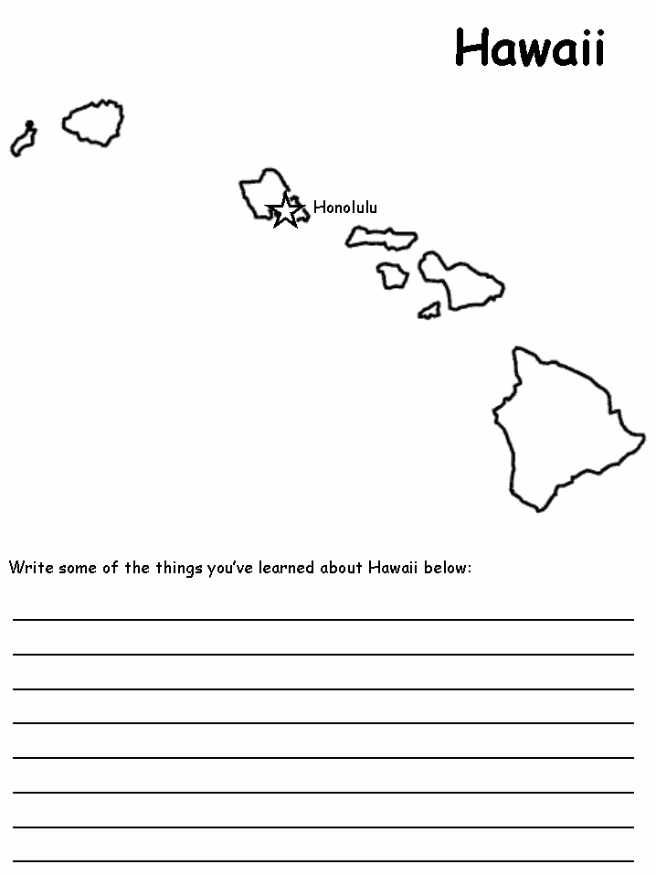 Click on the Hawaii state map activity worksheet below to see it in its own window (close that window to return to this screen) OR Right click and save image to your hard drive to print from your own  image software at your convenience.