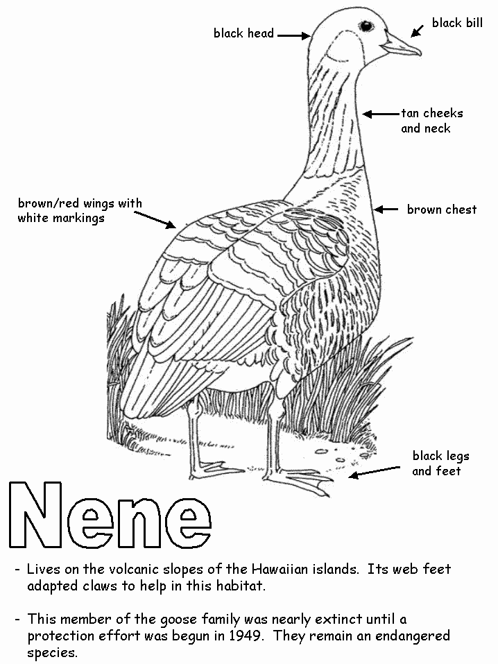 Click on the Hawaii Nene activity worksheet below to see it in its own window (close that window to return to this screen) OR Right click and save image to your hard drive to print from your own  image software at your convenience.
