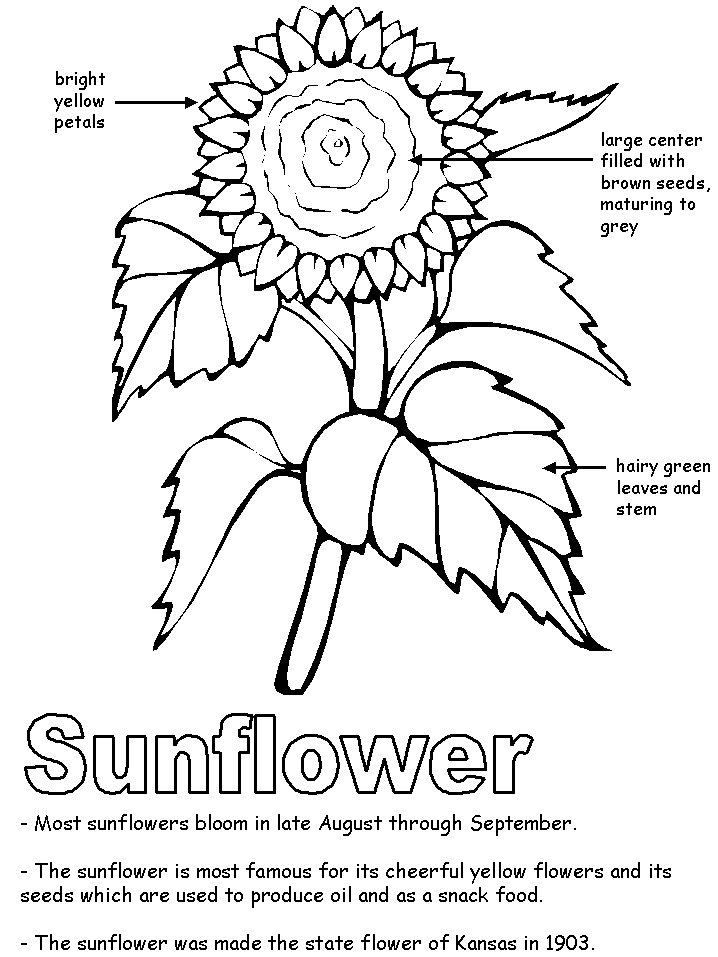 Click on the Kansas Sunflower activity worksheet below to see it in its own window (close that window to return to this screen) OR Right click and save image to your hard drive to print from your own  image software at your convenience.