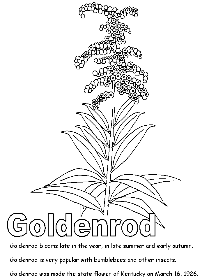 Click on the Kentucky Goldenrod coloring page below to see it in its own window (close that window to return to this screen) OR Right click and save image to your hard drive to print from your own  image software at your convenience.