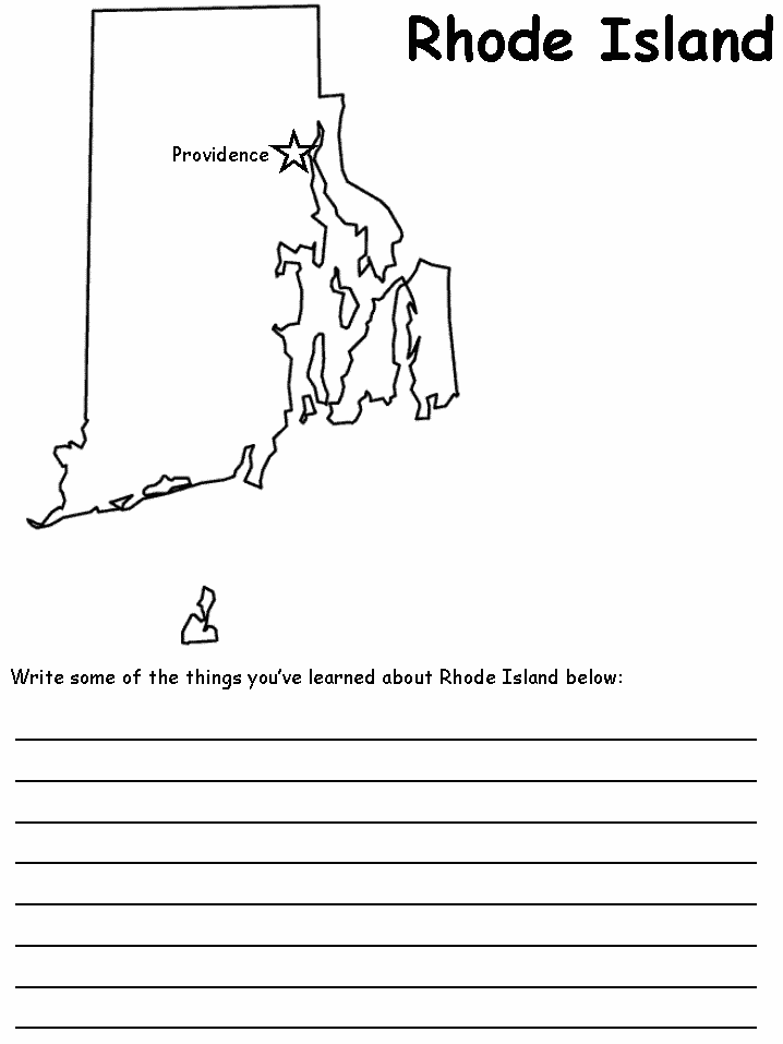 Click on the Rhode Island state map activity worksheet below to see it in its own window (close that window to return to this screen) OR Right click and save image to your hard drive to print from your own  image software at your convenience.