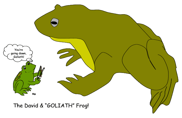 The goliath is the world's biggest frog with a body length of about one foot and weighing approximately 7 pounds! These frogs live in Western Africa along fast moving rivers that run through the rainforest.