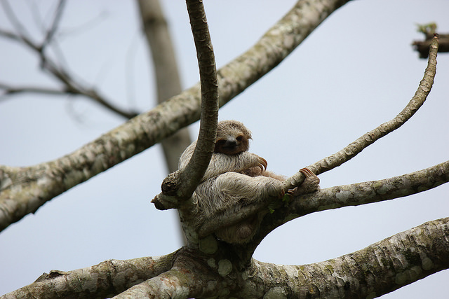 Like many types of sloth, the maned sloth lives the majority of its life in trees, and very rarely will come down to the ground. This is because they can move much quicker in trees, although even when they are in the trees they only move about 38 meters a day- to put this into perspective this is not even half the length of the average sized soccer field! Talk about a slowpoke!