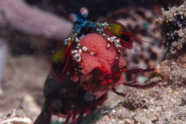 Some mantis shrimp species mate for life -- they meet the shrimp of their dreams and they share the same burrow, protect their eggs and help each other with hunting for their entire lives -- up to 20 years.