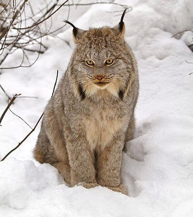 Photo: LynxLynxes are wild cats that can be found in boreal forests across Canada. They make their dens underneath fallen trees, tree stumps, rock ledges or thick bushes. The long, round feet of the lynx act like snowshoes by distributing their weight to help them walk on top of the snow. They also have sharp claws that retract helping them to climb, fight predators and capture prey. Their feet are covered in a thick layer of fur to keep them warm in the winter. Lynxes have dark tufted ears and short, dark bobbed tails. |
