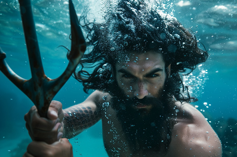 Poseidon has been a popular subject in art and literature for centuries. In classical art, he is often depicted as a robust, bearded man wielding a trident and riding a chariot pulled by hippocamps (mythical sea horses). These representations emphasize his authority and power over the sea and natural forces.